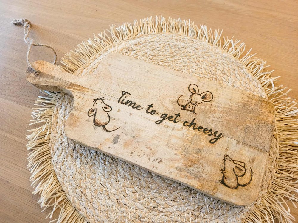 Een gepersonaliseerde borrelplank is daarnaast functioneel voor lekkere hapjes én staat nog eens heel leuk! De tekst of tekening wordt er professioneel met de hand ingebrand.